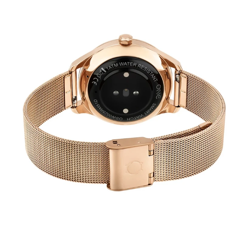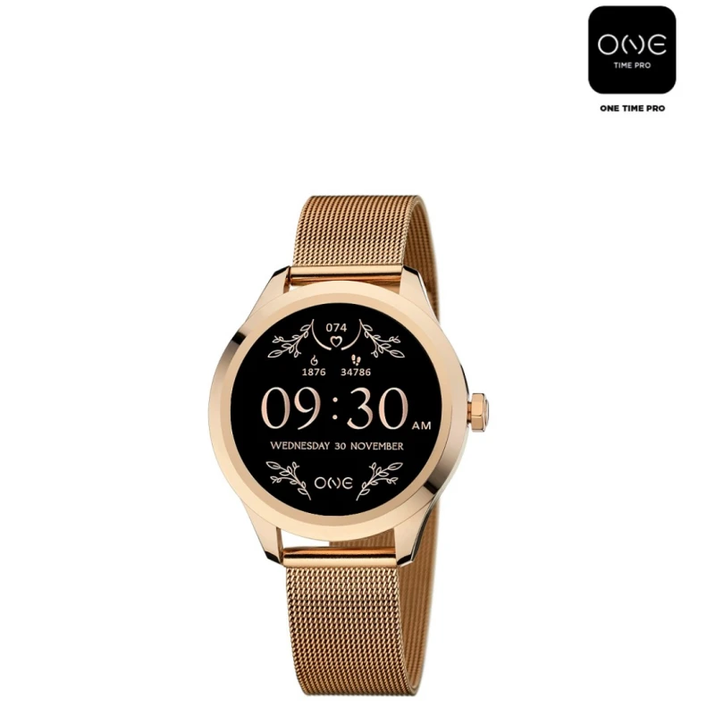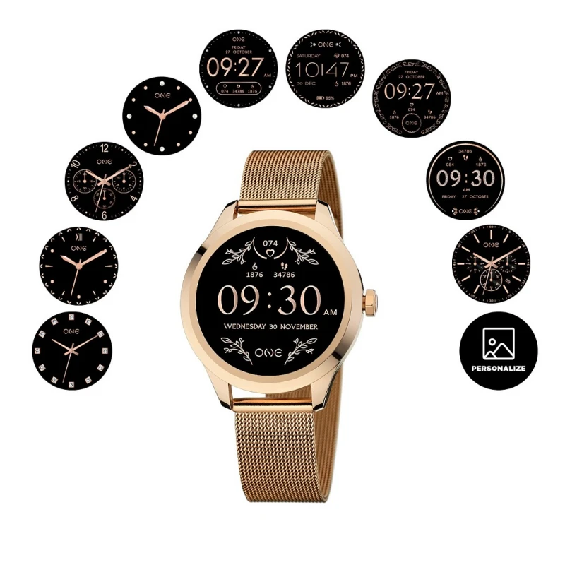 Relógios smartwatch feminino da linha One Mini, trabalhado em aço com uma bracelete de malha estilo milanesa em rose gold e uma caixa circular dotado de um ecrã AMOLED. Este mini smartwatch é um dispositivo tecnológico sofisticado que combina estilo e funcionalidade. O ecrã AMOLED oferece uma visualização nítida, vibrante e fluída, garantindo uma experiência visual premium. O mostrador é totalmente personalizável, com 10 designs exclusivos com o ADN One, ou possibilita usar qualquer imagem da galeria do telemóvel para um toque ainda mais pessoal. Compatível com a aplicação One Time Pro, o Mini rose gold permite manter o controlo da rotina com várias funcionalidades: como notificações, controlo de música, chamadas via Bluetooth, medição de saúde e muito mais. Para quem procura um smartwatch com funcionalidade, conectividade e estilo num formato mini, este acessório torna-se numa escolha ideal.