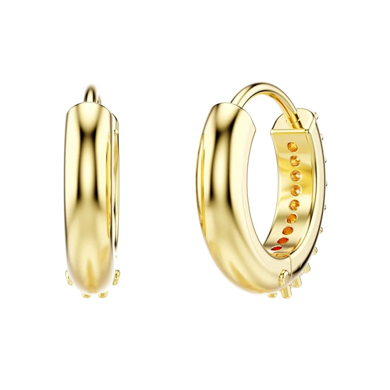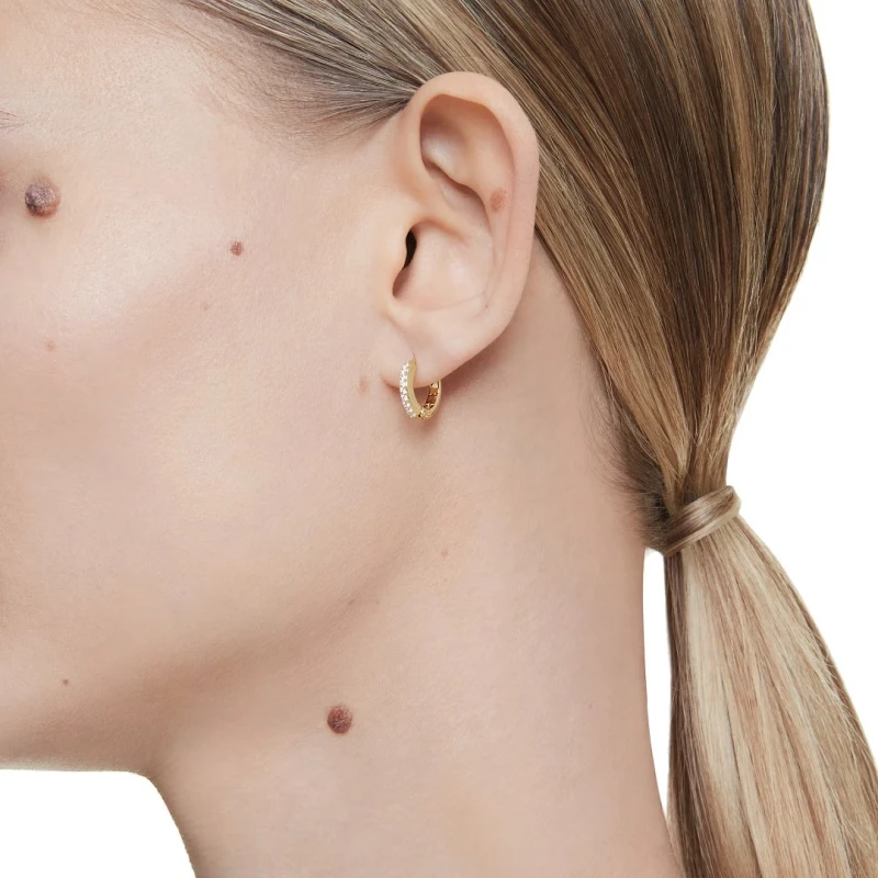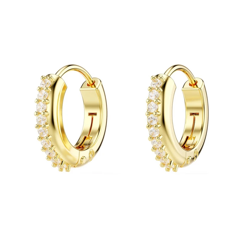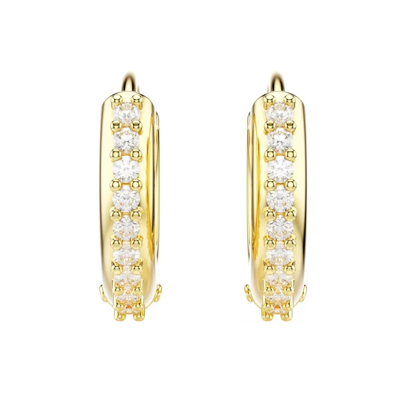 Envolve-se com o brilho destas elegantes argolas Swarovski em aço banhado a dourado. Destacando-se com o brilho cintilante de cristais Swarovski incolores, engastadas em garras, estas joias tornam-se num acessório que eleva o visual feminino com um toque natural e luminoso em qualquer momento.