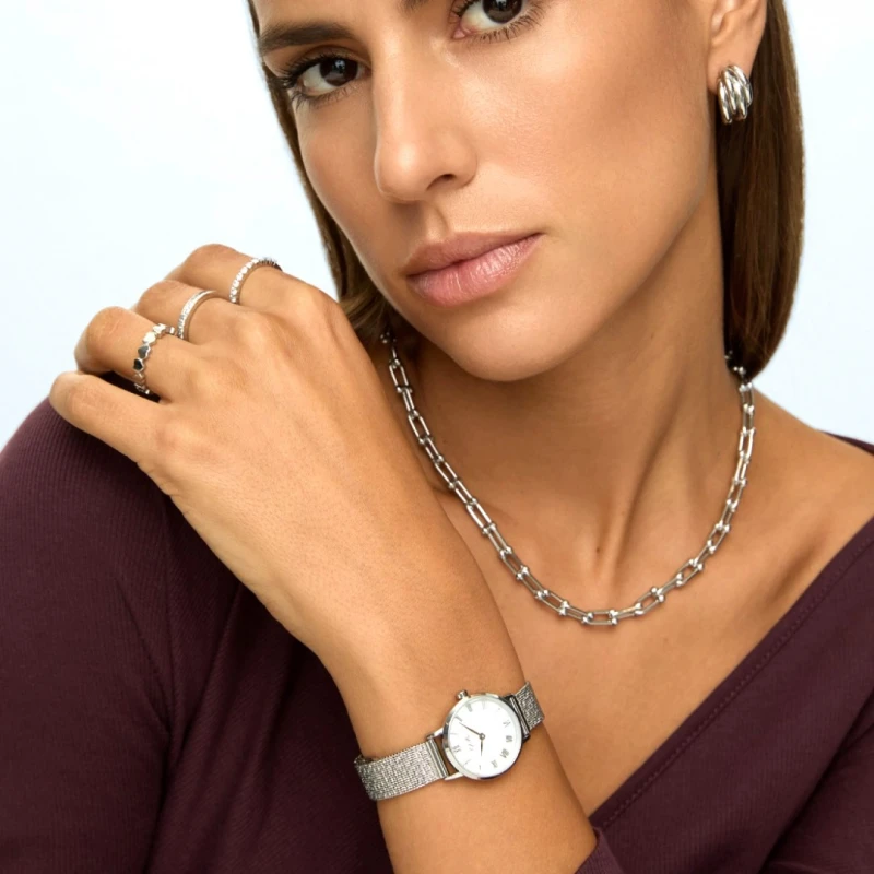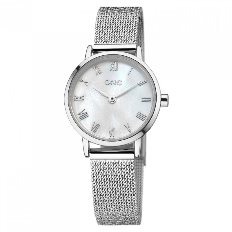 Este elegante relógio ONE apresenta um design mais minimalista, discreto e com um toque vintage. Este modelo segue a tendência de caixas mais pequenas o mostrador deste relógio tem um fundo em madrepérola, que lhe confere um toque mais romântico, e que é complementado pelos indexes em numeração romana e em prateado.