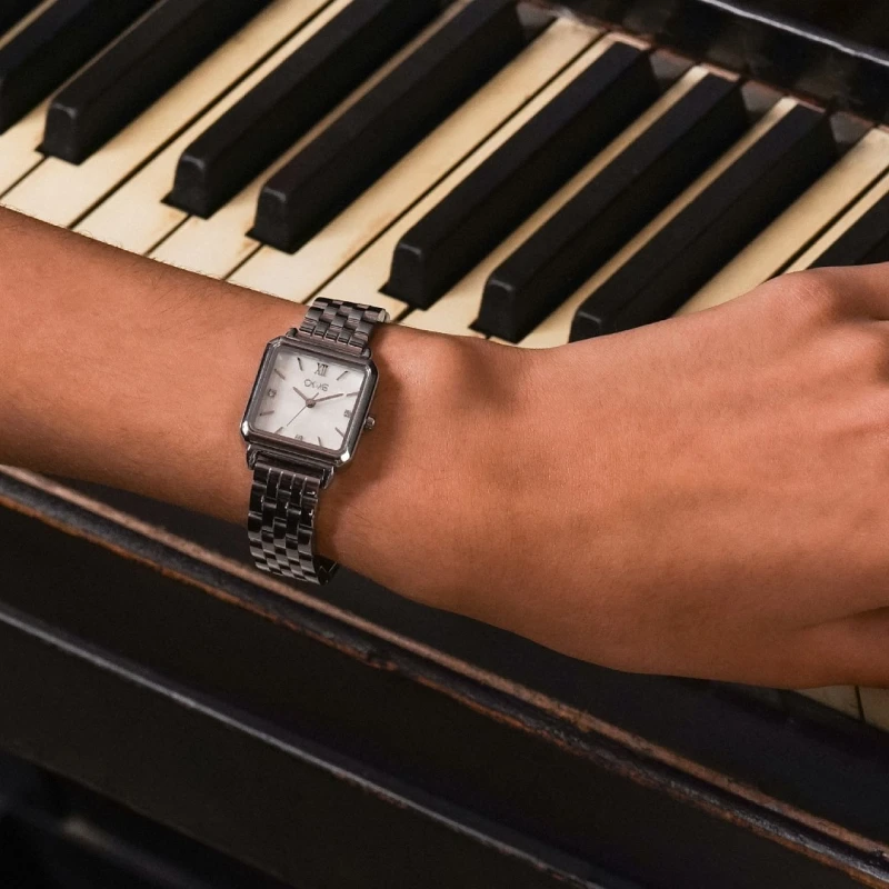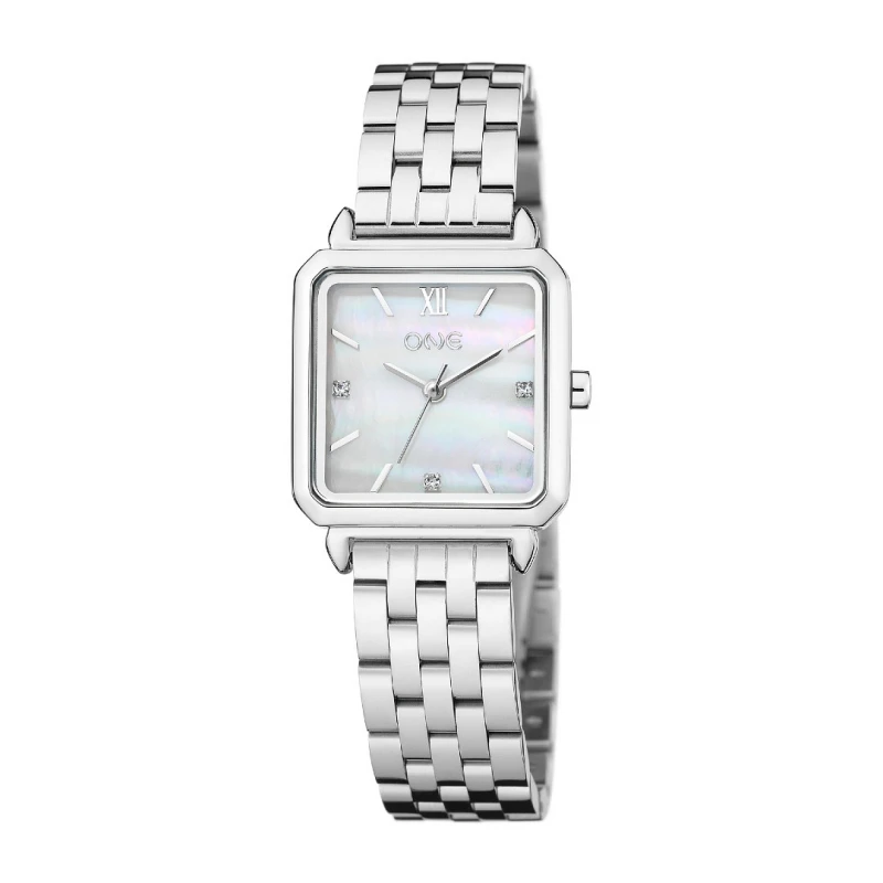 Relógio de mulher da coleção One Rêverie, um acessório de estilo intemporal num design clássico presente com a caixa quadrangular que envolve um mostrador em madrepérola. Elaborado em aço de coloração prateada, este acessório torna-se um complemento visual ideal para um look feminino de forma prática com um toque de charme e elegância, evocado pelas suas pequenas dimensões e paleta contrastante que desperta um brilho delicado a cada movimento.