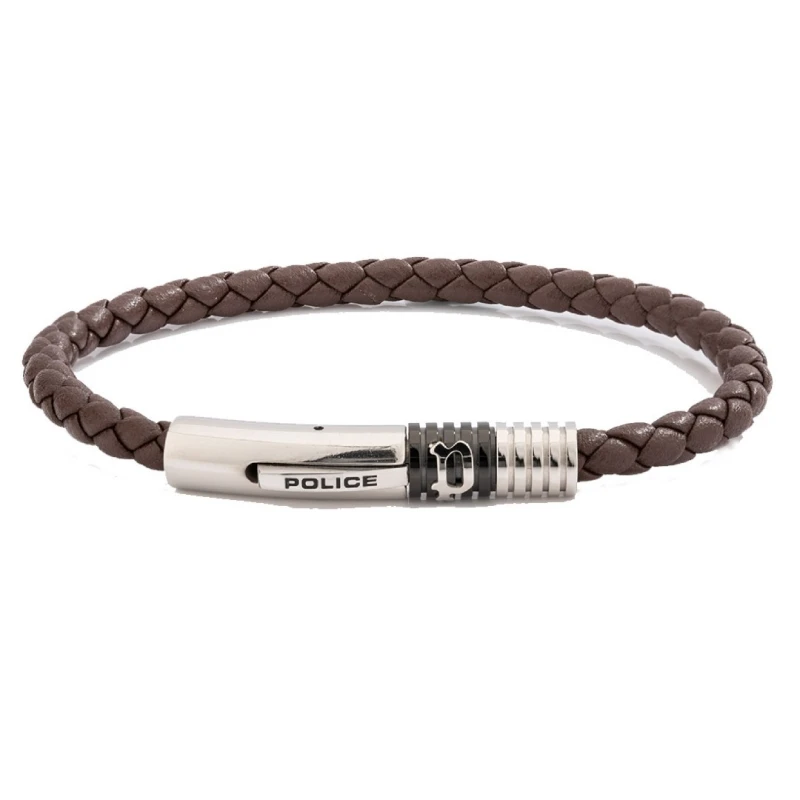 Pulseira Police em couro genuíno e fecho em aço para homem. Com 19 cm e fecho magnético, é super segura e adaptável a diferentes estilos.