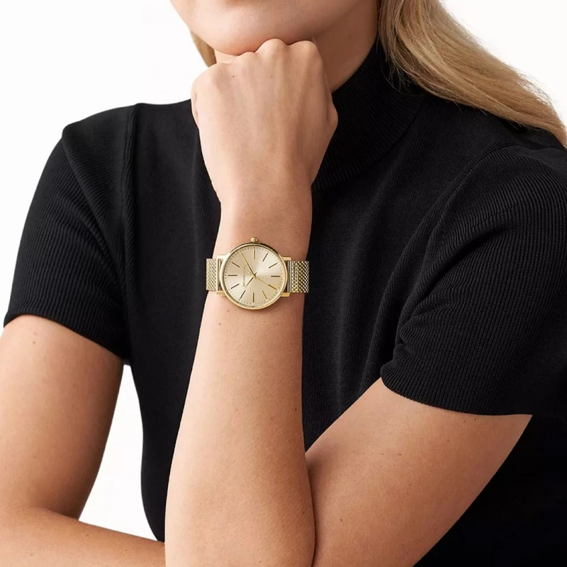Este relógio elegante da Michael Kors, com bracelete em aço inoxidável de tom dourado é o modelo adequado para uma mulher decidida e confiante. Ideal para uma saída à noite ou para um evento formal mas adaptável ao quotidiano.