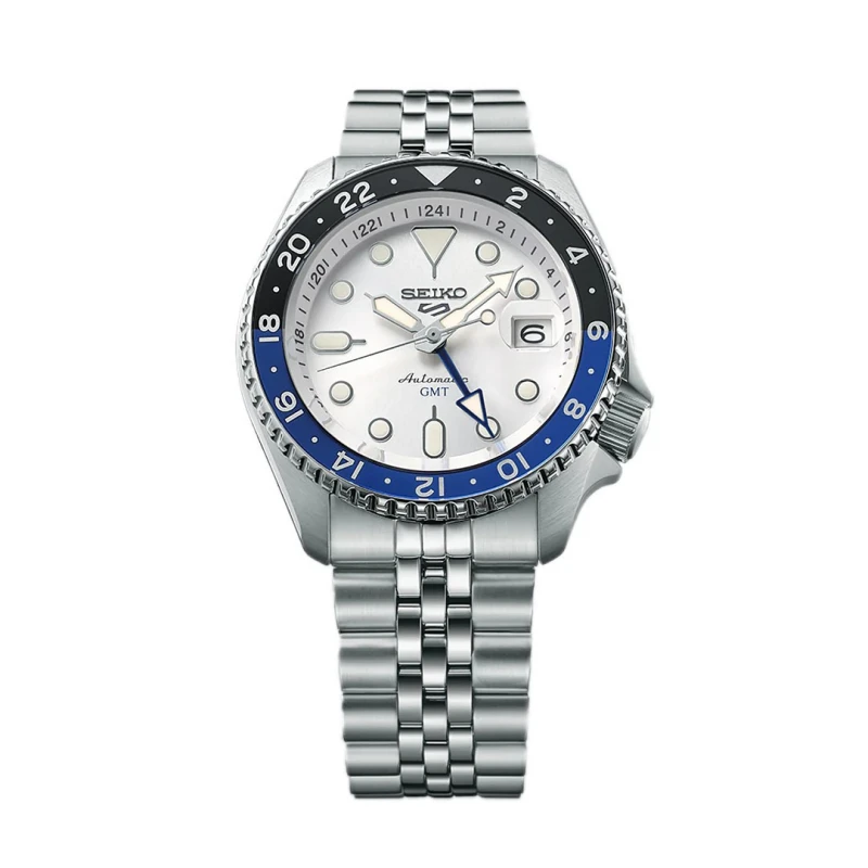 Crie distinção ao look com este relógio masculino da Seiko 5 Sports, um modelo elegante trabalhado em aço inoxidável prateado sobre a bracelete e caixa. Com um bisel de coloração em azul escuro, comportando o formato das 24 horas, o mostrador é envolvido em tonalidades entre branco e cinza, criando um contraste delicado que se combina uniformemente com uma variedade de looks com um toque refinado e luxuoso. Composto por um movimento automático com corda manual de fabrico japonês, o calibre 4R34 deste belo modelo é composto por 24 joias e uma reserve da marca de 41 horas. Detalhado com ponteiros e marcadores que brilham em situações de baixa luz, este acessório destaca a sua assinatura, presente em modelos Seiko 5, com o posicionamento da coroa na posição das 4 horas.