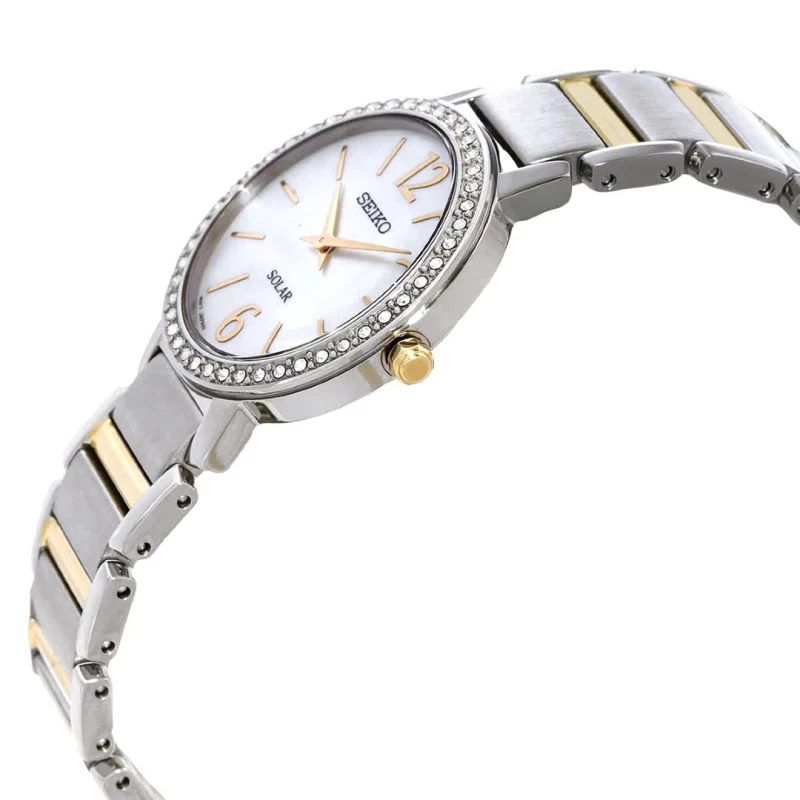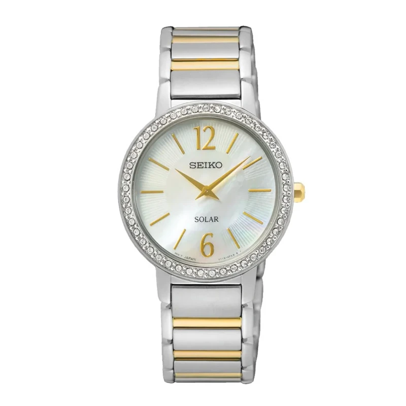 Este Relógio Seiko é uma modelo clássico de senhora com movimento a luz solar. A caixa e a bracelete são em aço inoxidável e mostrador madrepérola. Um relógio versátil e bastante elegante que vai ser o complemento que faltava ao seu look.