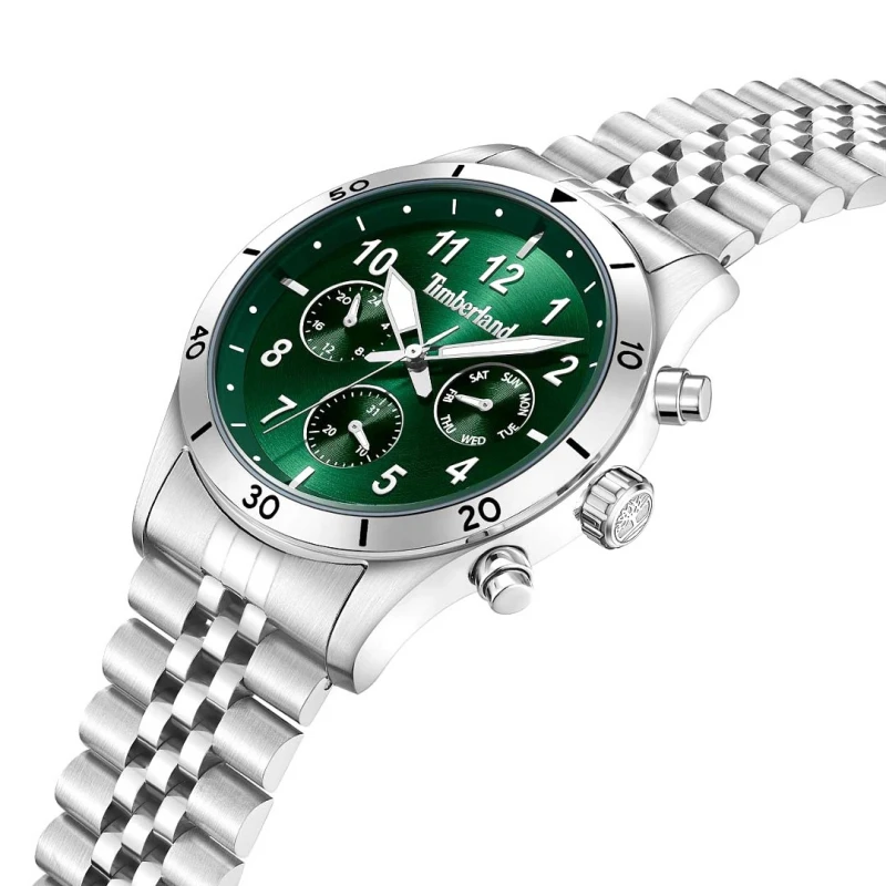 Um modelo para homem da coleção Ashmont, com caixa e bracelete em aço inoxidável e mostrador verde. Os relógios Timberland são inspirados em um estilo de vida ao ar livre com especial foco na aventura e nas atividades físicas e radicais. Este é o relógio perfeito para espíritos livres e aventureiros.