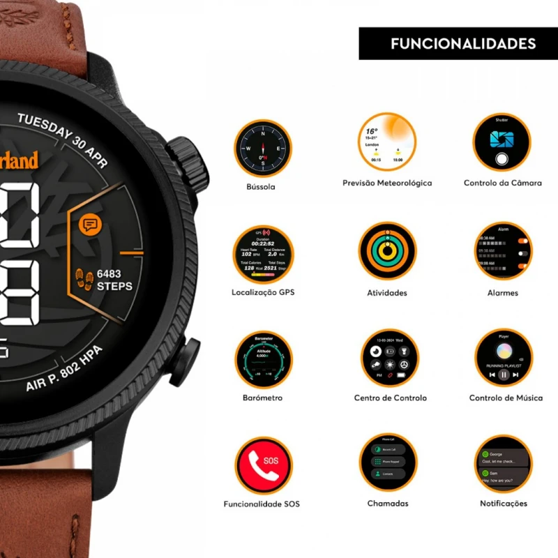 Tudo o que precisas para monitorizar a tua prática de exercício físico e estares na moda, é o que encontras neste novo Smartwatch Timberland. Esta box contém duas braceletes extra em silicone em preto e cor de laranja, para poderes mudar o teu estilo. Com múltiplas funcionalidades como GPS, monitorização de saúde, mais de 100 modos de desporto e todo o tipo de notificações como chamadas e mensagens, que irão acompanhar-te no teu dia-a-dia e nas tuas aventuras.