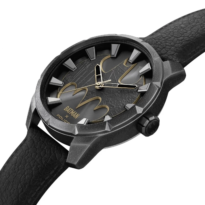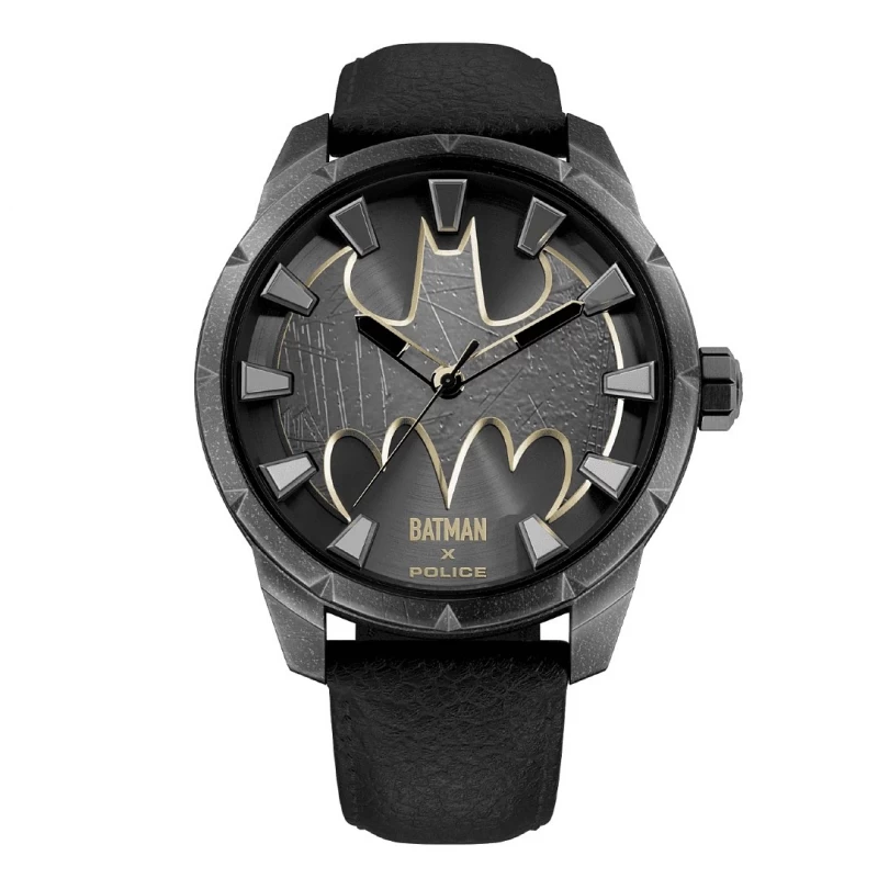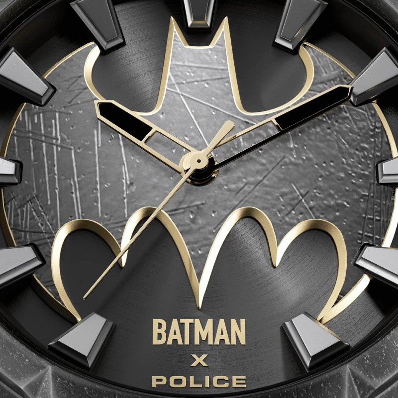 Espetacular relógio masculino de edição limitada da Police, um modelo que presta homenagem à personagem fictícia Batman, uma figura icónica de super-heróis do universo DC Comics. Elaborado com uma bracelete preta em couro genuíno, ligado a uma caixa robusta circular, este acessório envolve um mostrador destacante com a sua representação tridimensional do logótipo icónico da figura de batman. Trabalhado em aço com uma coloração contrastante de um dourado que delineia a forma do batarang preto com detalhes de riscos sobre o metal para um aspeto mais realista e caraterístico. Símbolo que combina elegância com robustez, esta peça de coleção torna-se ideal para qualquer fã do cavaleiro das trevas como tributo à poderosa lenda que combate o crime pela cidade de Gotham.
