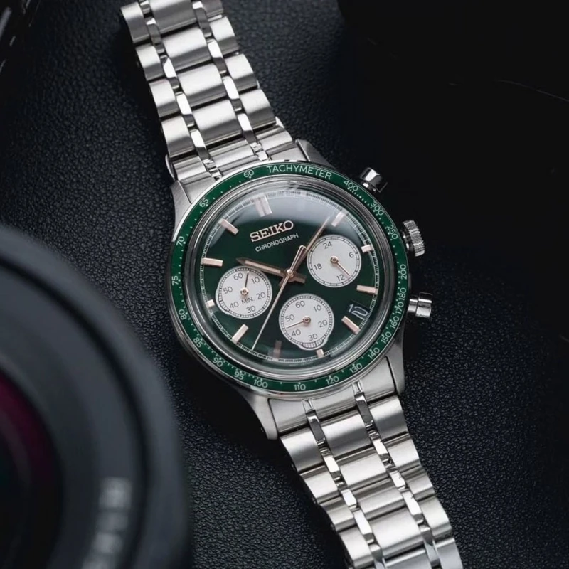 Este modelo masculino da Seiko, com caixa e bracelete em aço inoxidável, conta com um mostrador de tom verde, um relógio desportivo com movimento japonês calibre 8T63. Em situações de pouca luz, este modelo também vem com ponteiros brilhantes. Este relógio, resistente à água de até 100 metros, de design contemporâneo, irá acompanhá-lo na sua vida cotidiana, bem como durante as suas atividades desportivas.